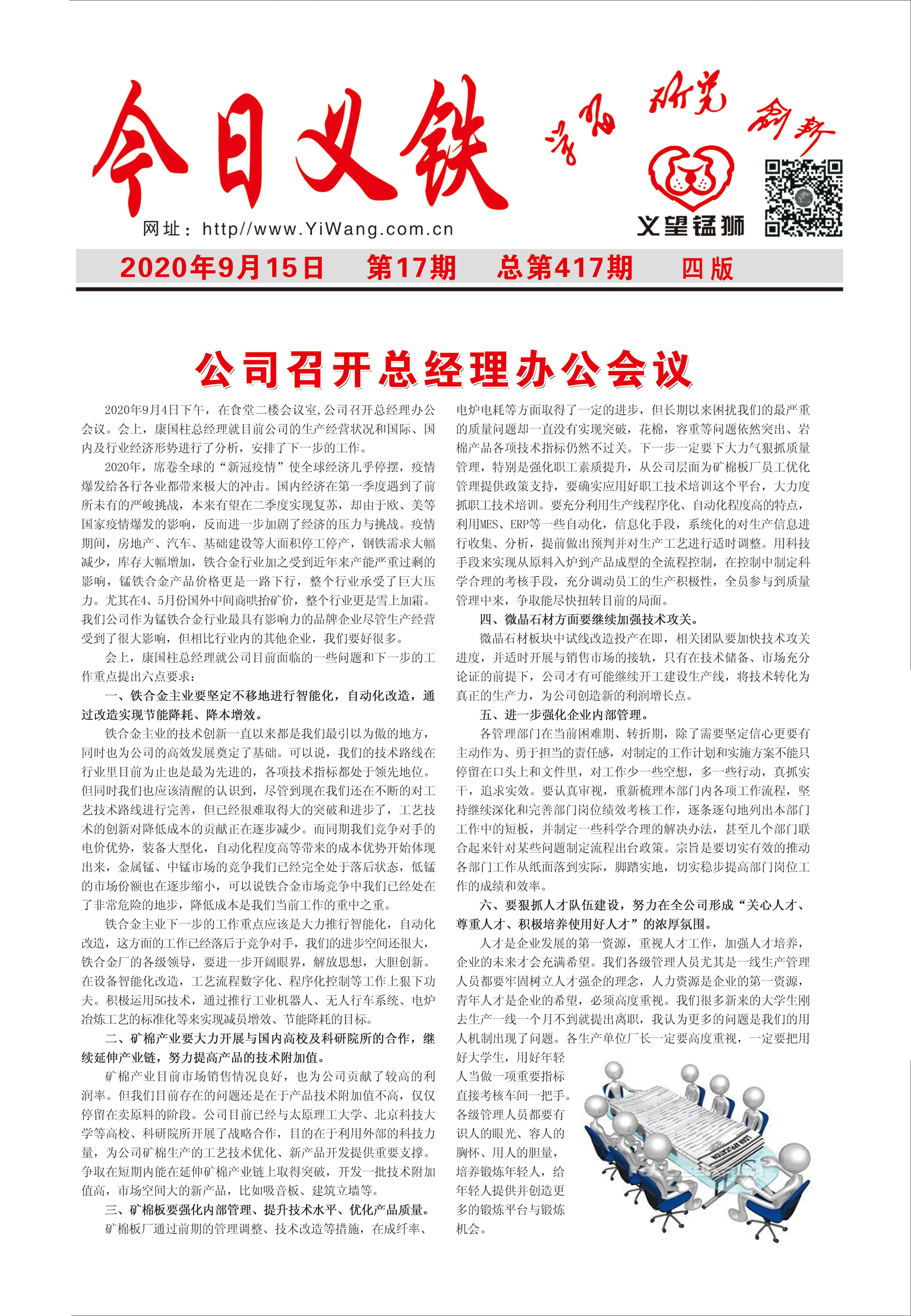 2020年9月4日下午,在食堂二樓會議室,公司召開總經(jīng)理辦公會議。會上,康國柱總經(jīng)理就目前公司的生產(chǎn)經(jīng)營狀況和國際、國內(nèi)及行業(yè)經(jīng)濟形勢進行了分析,安排了下一步的工作。