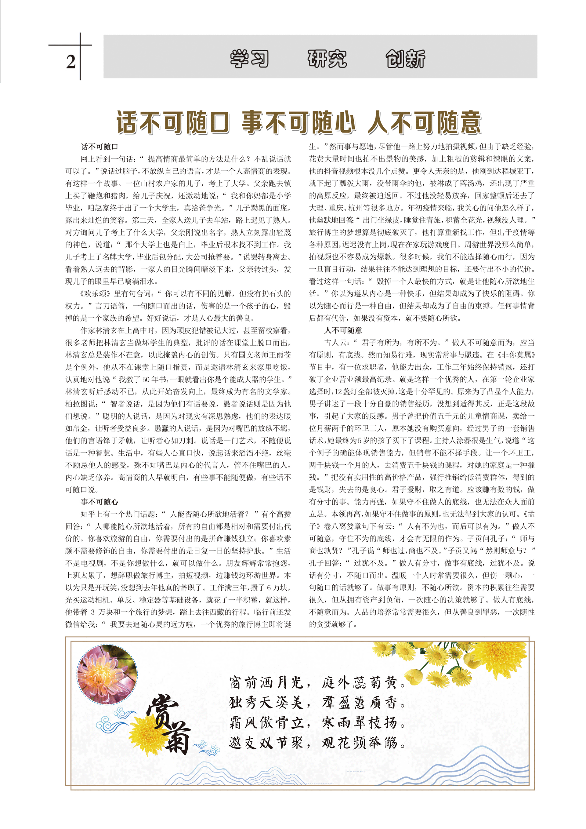 網(wǎng)上看到一句話:“提高情商最簡單的方法是什么?不亂說話就可以了?!闭f話過腦子,不放縱自己的語言,才是一個人高情商的表現(xiàn)。有這樣一個故事。